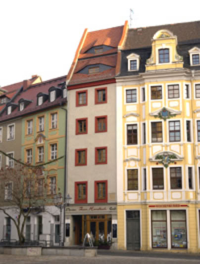 Nur zwei Fenster breit ist das wegen seiner Schmalheit so genannte Handtuchhaus am Bautzener Hauptmarkt.