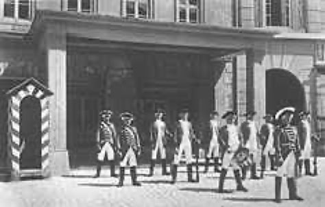 Die Kommunalgarde war eine Einheit von Stadtsoldaten, bei der seinerzeit alle männlichen Bürger dienstpflichtig waren. Ihre Hauptwache befand sich im östlich neben dem Rathause stehenden Nachbargebäude.